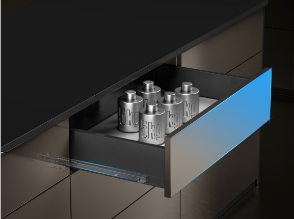 N2全展滑軌,采用兩節(jié)隱藏式設(shè)計,使用時抽屜可全拉出,充分利用抽屜空間。緩沖滑軌在開合關(guān)閉間,更靜音、更順滑,隱藏式設(shè)計讓抽屜更顯簡約之美。